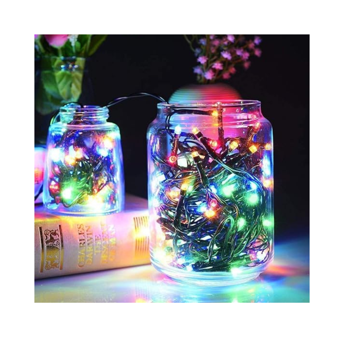 Convierte tus espacios en un rincón mágico con nuestra cadena de luces solares de 100 LEDs. Diseñada para brillar gracias a la energía del sol, cada noche se transforma en un espectáculo de luz y color, ideal para terrazas, jardines o patios.